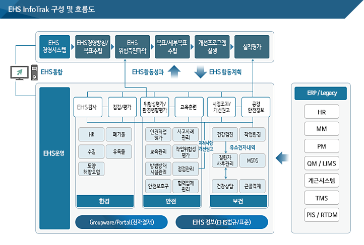 EHS ½Ã½ºÅÛ(EHS InfoTrak)Àº EHS°ü·Ã ¾÷¹« ÇÁ·Î¼¼½º¸¦ Ç¥ÁØÈ, ÃÖÀûÈÇÏ¿© EHSÁ¤º¸¸¦ µ¥ÀÌÅͺ£À̽ºÈ Çϰí,